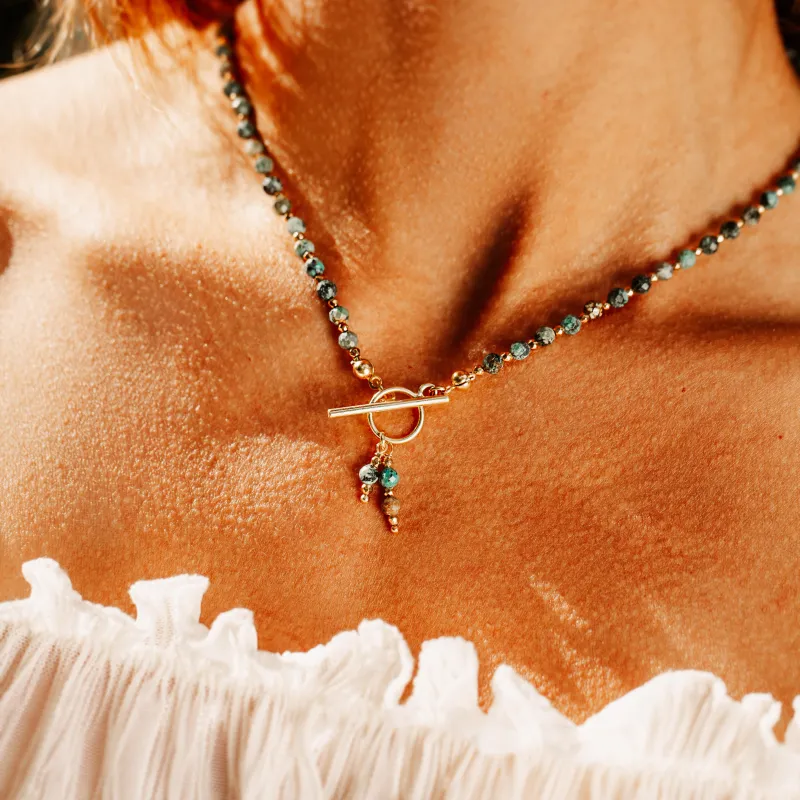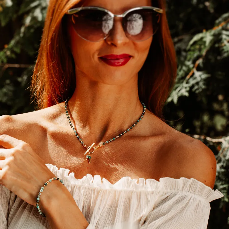 Turkus, Hematyt - srebrny pozłacany naszyjnik na ochronę, bogactwo, uzdrowienie - Skarby Oceanu
