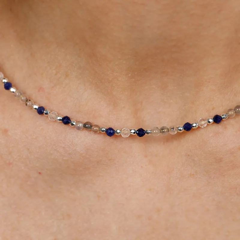 Sodalit, Kryształ Górski, Labradoryt - srebrny naszyjnik na szczęście, duchowość, koncentrację - Światło Spokoju