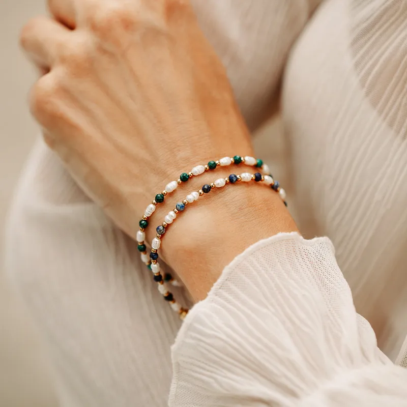 Perła, Malachit - srebrna pozłacana bransoletka na zdrowie, uzdrowienie, intuicję - Skarby Oceanu