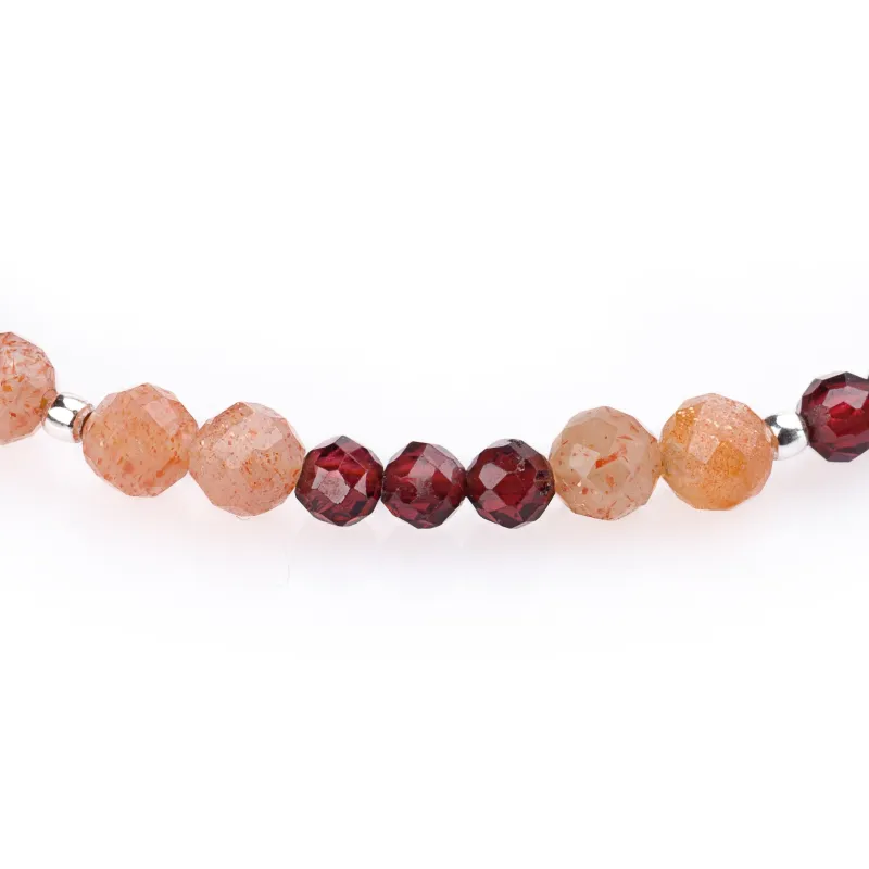 Kamień Słoneczny, Granat - srebrna bransoletka na zdrowie, miłość, kreatywność - Energia Sukcesu