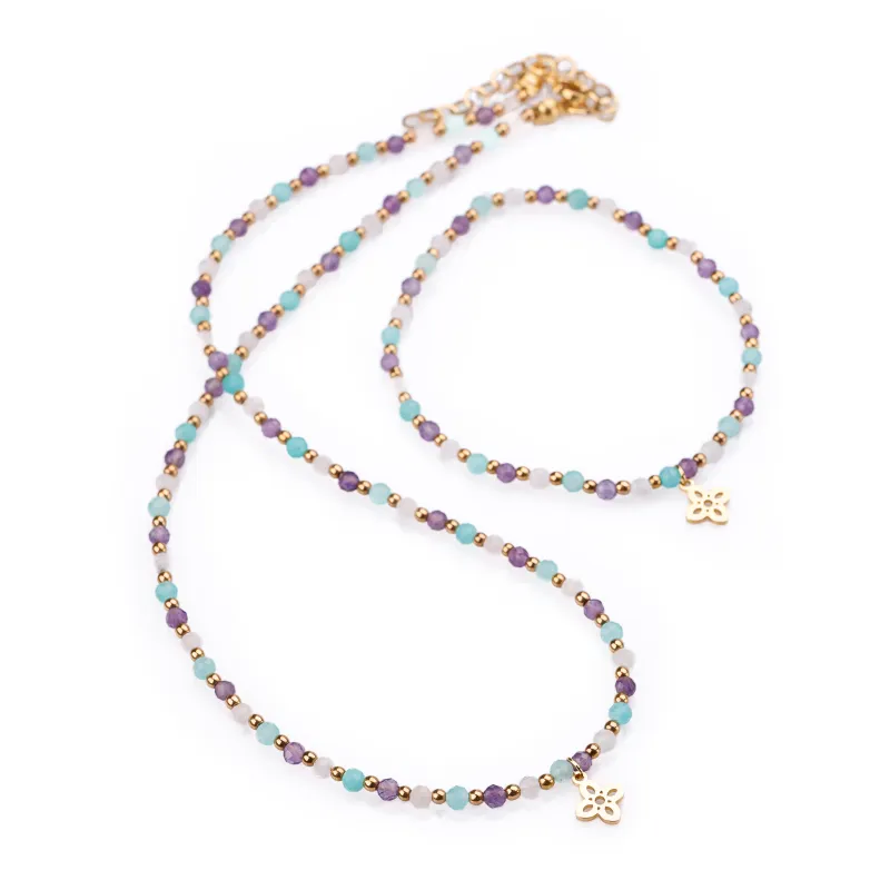 Kunsztownie połączone kamienie, niczym barwne akordy w mistrzowskiej symfonii, splatają opowieść o równowadze i wewnętrznej mocy. To nie tylko biżuteria, to osobisty towarzysz, który każdego dnia będzie przypominał Ci o Twojej zdolności do przekraczania barier i odnajdywania radości w drobnych momentach.