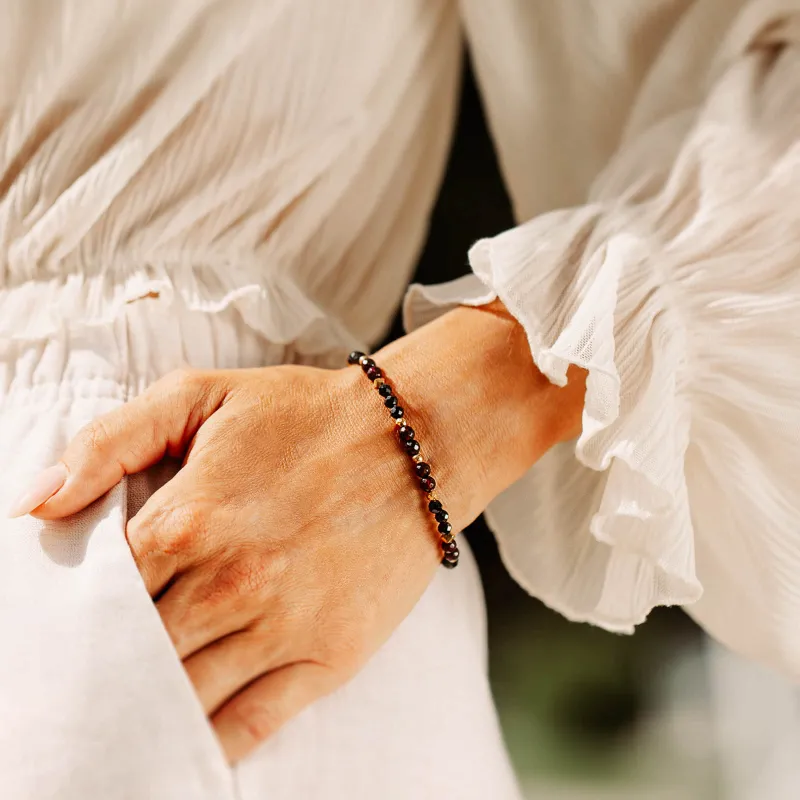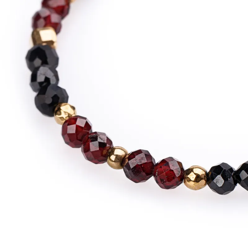 Turmalin, Granat, Hematyt - srebrna pozłacana bransoletka na ochronę, bogactwo, uzdrowienie - Wewnętrzna Ochrona