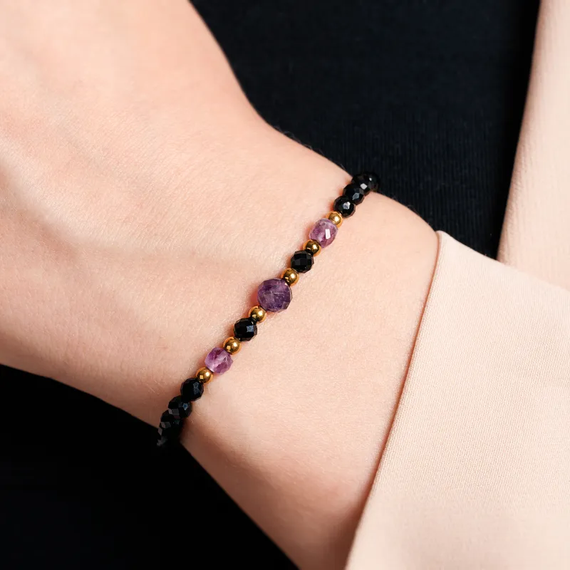 W świecie, gdzie chaos i rozproszenie są codziennością, szukamy ostoi i wewnętrznej harmonii. Ta wyjątkowa bransoletka, stworzona z myślą o kobietach pragnących odnaleźć równowagę i skupienie, jest niczym magiczny talizman o głębokim znaczeniu symbolicznym. Wykonana z ametystu, spinelu i hematytu, łączy w sobie trzy cenne energie, wspomagając koncentrację, miłość i sukces.