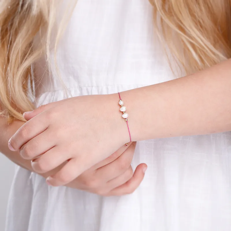 Perła, Hematyt - bransoletka dziecięca na sznurku na harmonię, uzdrowienie, spokój - Bajkowy Świat