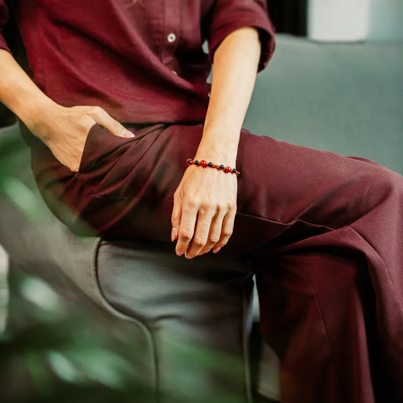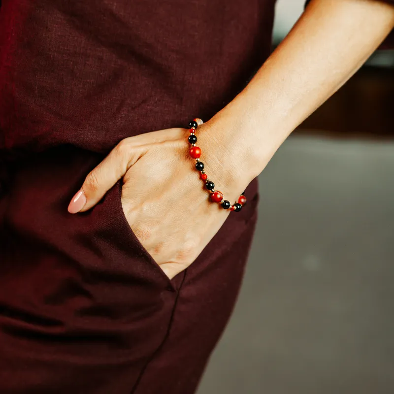 Turmalin, Agat, Karneol - srebrna pozłacana bransoletka na ochrona, bogactwo, uzdrowienie - Wewnętrzna Ochrona