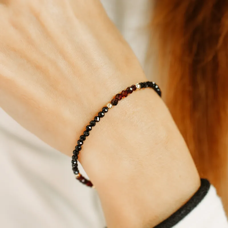 Spinel, Granat - srebrna pozłacana bransoletka na zdrowie, miłość, kreatywność - Pocałunek Miłości
