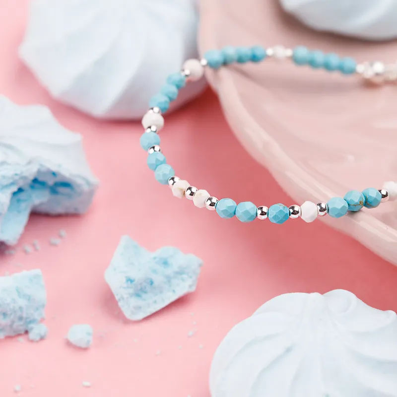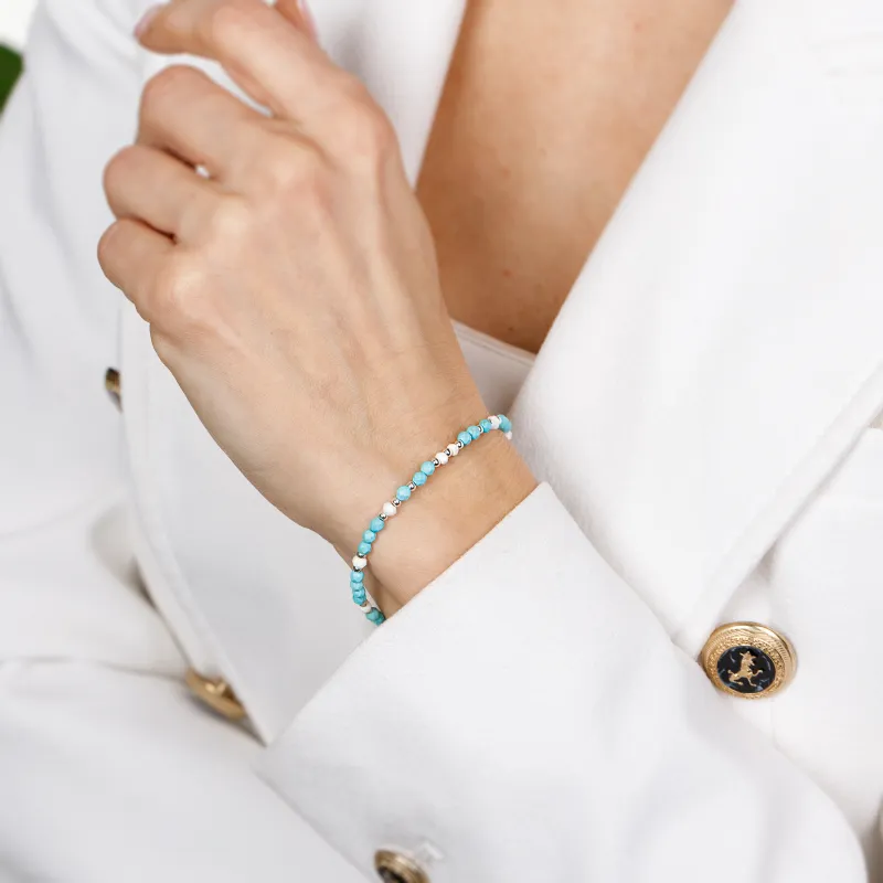 Ta subtelna bransoletka z turkusem to idealny dodatek na co dzień, szczególnie pięknie prezentujący się w letnich stylizacjach, choć jej uniwersalny urok sprawia, że pasuje do każdej pory roku. Aby zachować jej blask, unikaj kontaktu z ostrymi chemikaliami i przechowuj ją w suchym miejscu, z dala od bezpośredniego światła słonecznego.