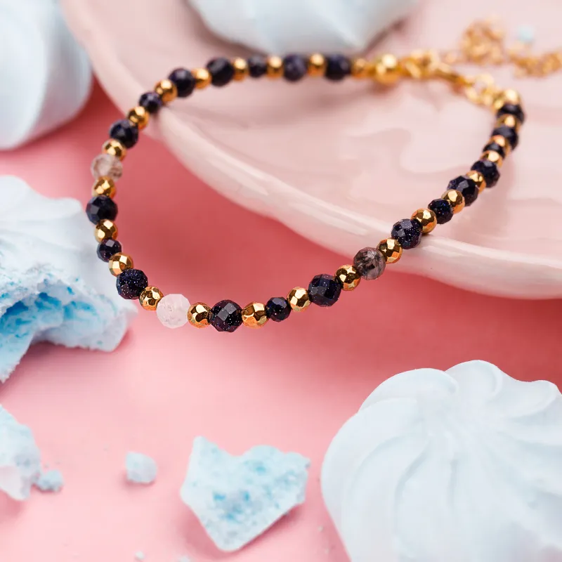 - Baza: Delikatny, ale wytrzymały drucik jubilerski, gwarantujący swobodne układanie się na nadgarstku.