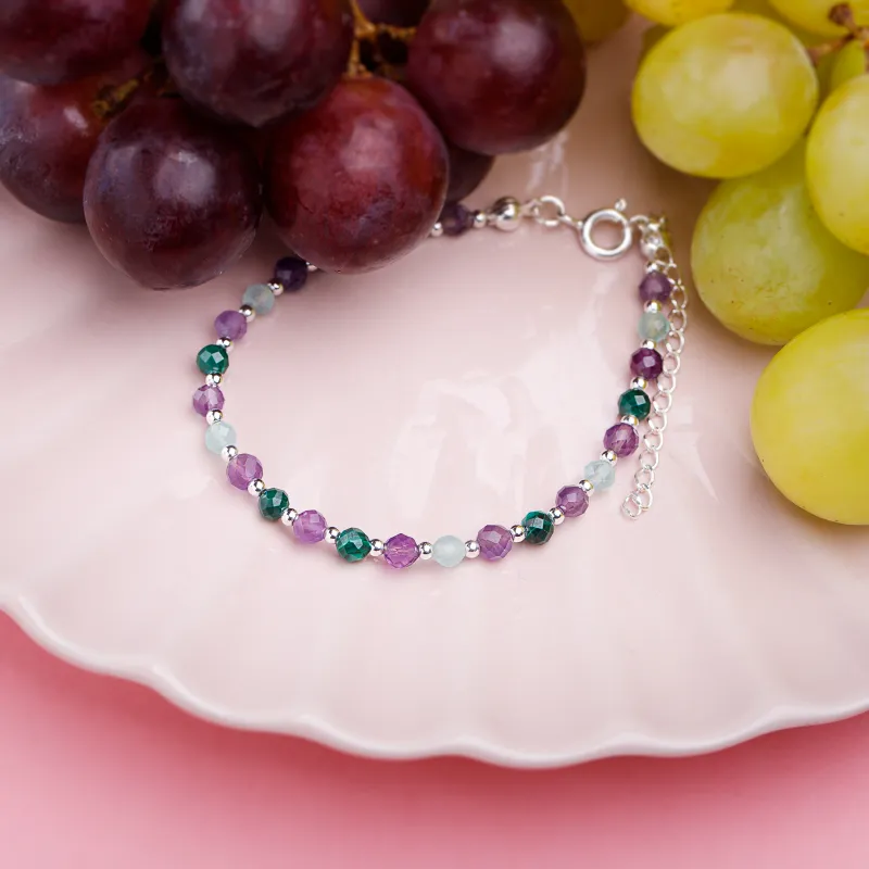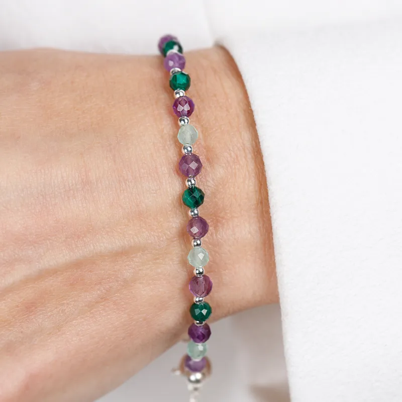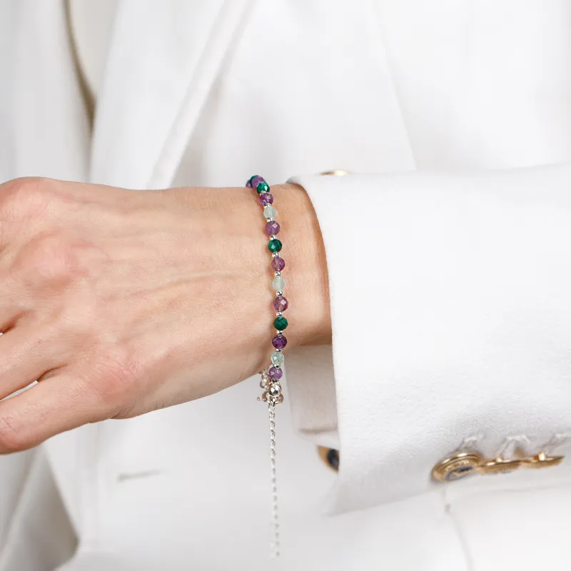 Kocie Oko, Malachit, Ametyst, Hematyt - srebrna bransoletka na koncentrację, miłość, bogactwo - Energia Sukcesu