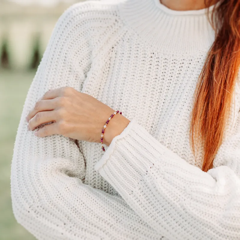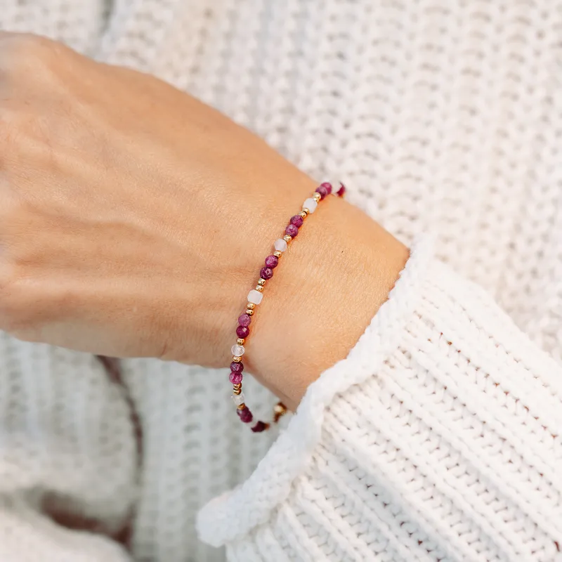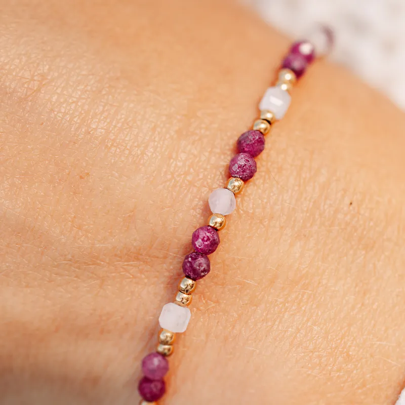 Ta subtelna, srebrna bransoletka pozłacana to więcej niż tylko biżuteria. To symbol Twojej wewnętrznej siły, miłości i szczęścia, który towarzyszy Ci każdego dnia. W jej sercu spoczywa rubin, kamień symbolizujący pasję, odwagę i życiodajną energię. Obok niego, jak delikatny akcent, umieszczono kwarc różowy, który dodaje nuty subtelności i promuje miłość, spokojność i harmonię.