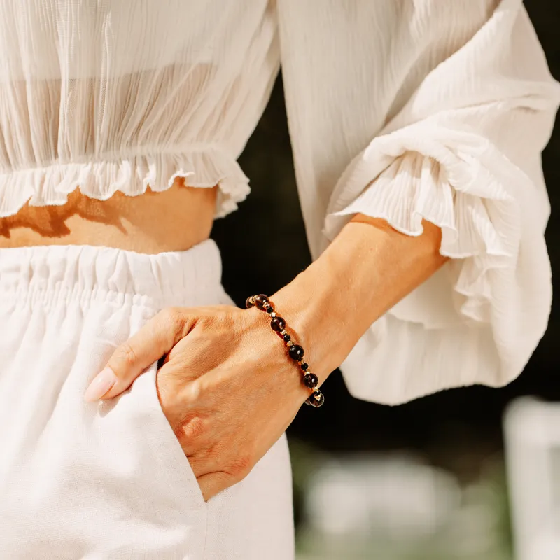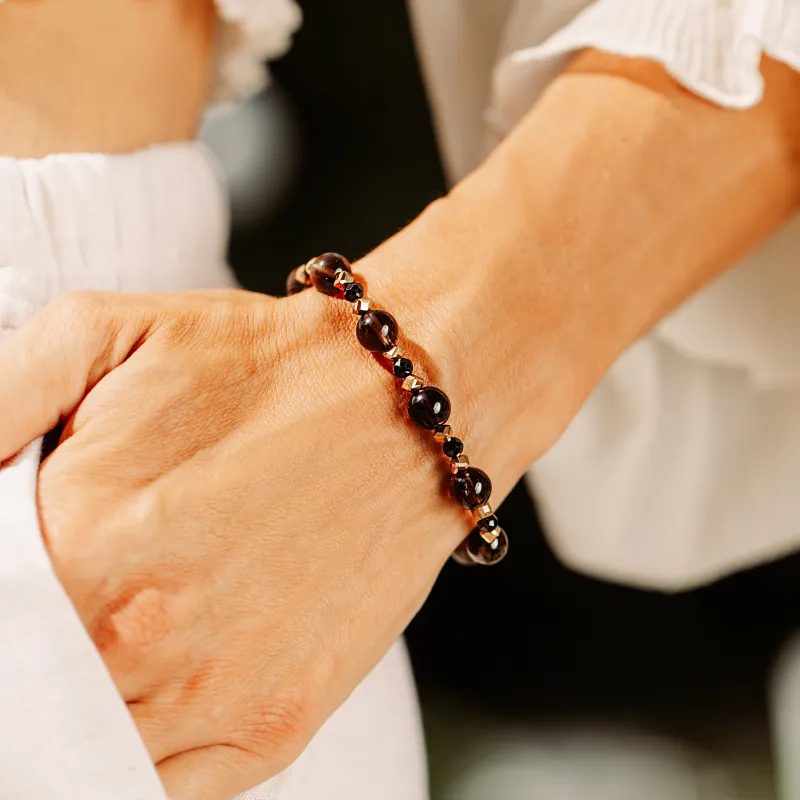 Kwarc Dymny, Turmalin, Hematyt - srebrna pozłacana bransoletka na siłę, uzdrawianie, kreatywność - Duchowe Przebudzenie