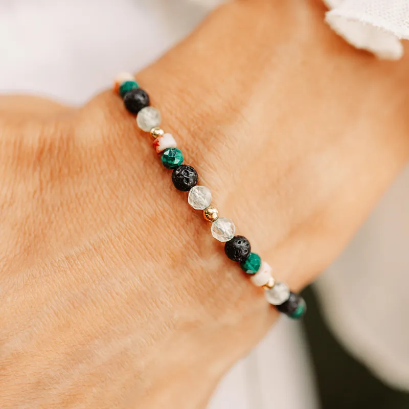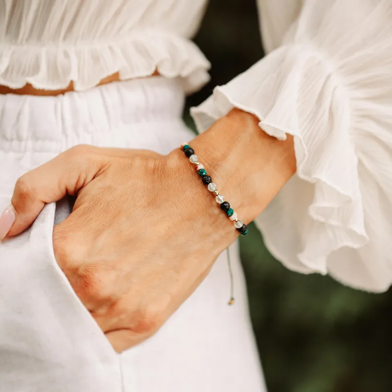 Malachit, Lawa Wulkaniczna, Prehnit - bransoletka na sznurku na odwagę, siłę, spokój - Światło Spokoju