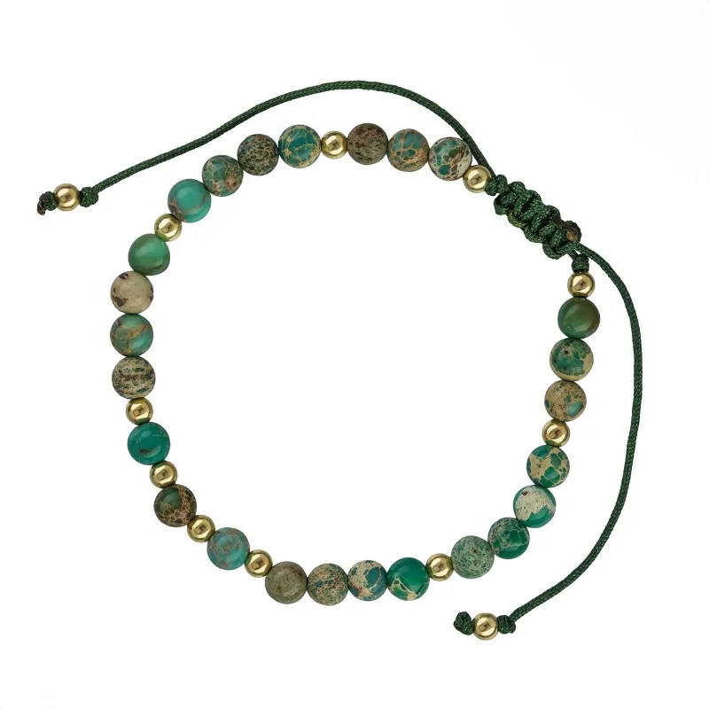 Jaspis - bransoletka na sznurku Refleksja Zdrowia to przykład rzemieślniczej precyzji, stworzonej z myślą o trwałości i komforcie noszenia. Ta damska bransoletka łączy surowość kamienia z delikatnością regulowanego splotu.