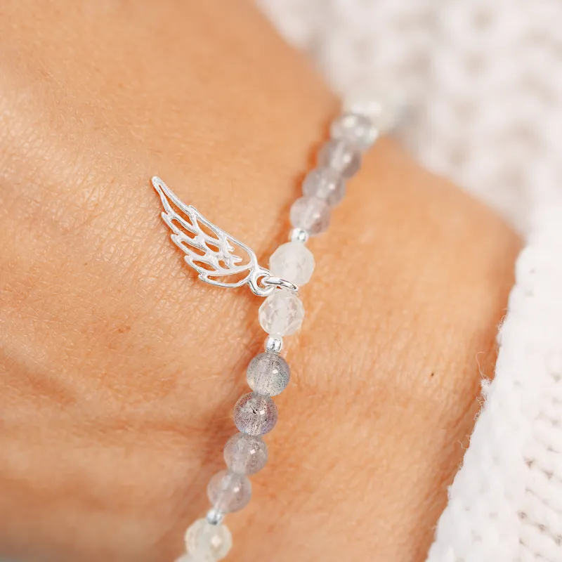 Sercem bransoletki są dwa wyjątkowe kamienie: Prehnit i Labradoryt. Prehnit o delikatnym zielonym odcieniu, symbolizuje spokój, harmonię i wewnętrzny pokój. Labradoryt zaś, z wyjątkową grą kolorów, wspiera intuicję, otwiera umysł na nowe możliwości i chroni przed negatywną energią.