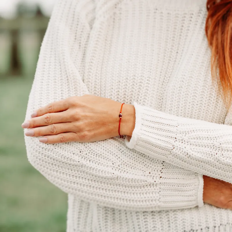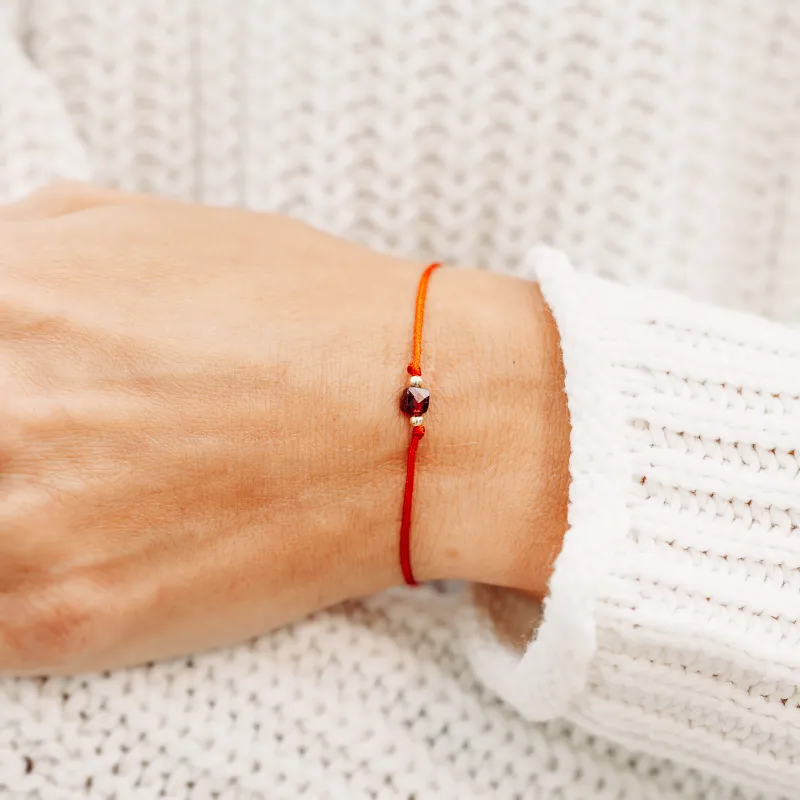 Granat - czerwona bransoletka na sznurku na harmonię - Pocałunek Miłości