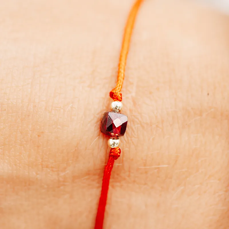 Ta wyjątkowa bransoletka została stworzona z myślą o kobietach, które pragną połączyć elegancję z symboliką. Wykonana z najwyższej jakości srebra pozłacanego, bransoletka zdobiona jest fasetowanym granatem o głębokiej czerwonej barwie.