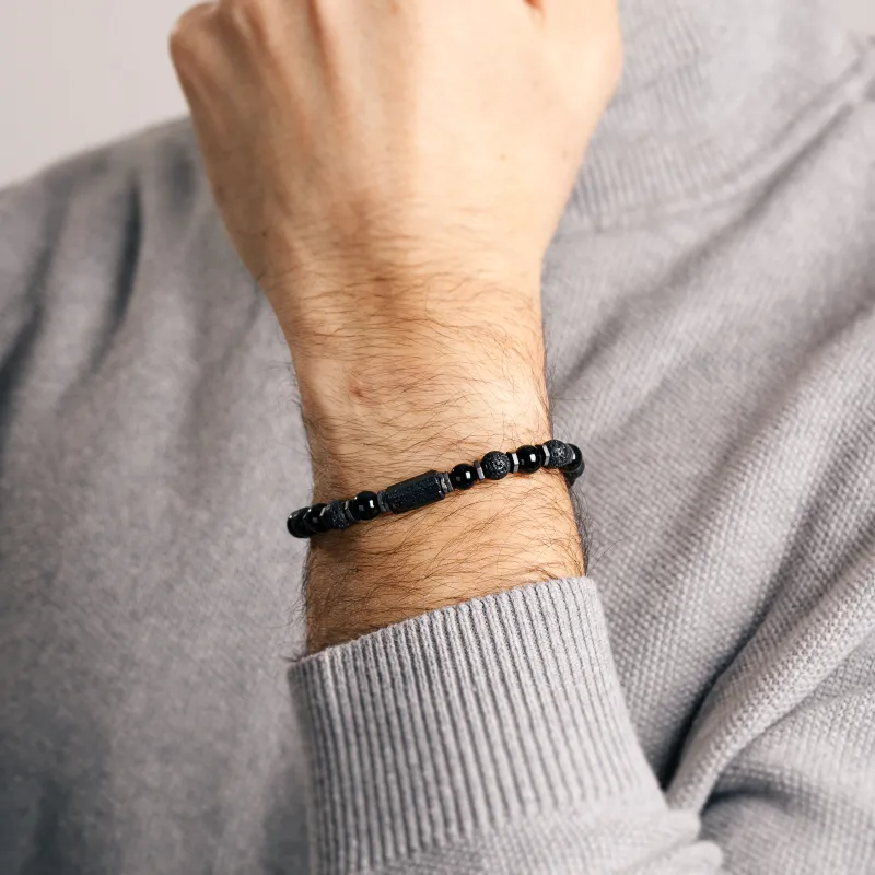 Dbałość o każdy detal i harmonia natury z rzemieślniczą precyzją tworzą przedmiot, który towarzyszy przez lata. To właśnie oferuje bransoletka męska Turmalin, Lawa Wulkaniczna, Hematyt z kolekcji Jego Styl.
