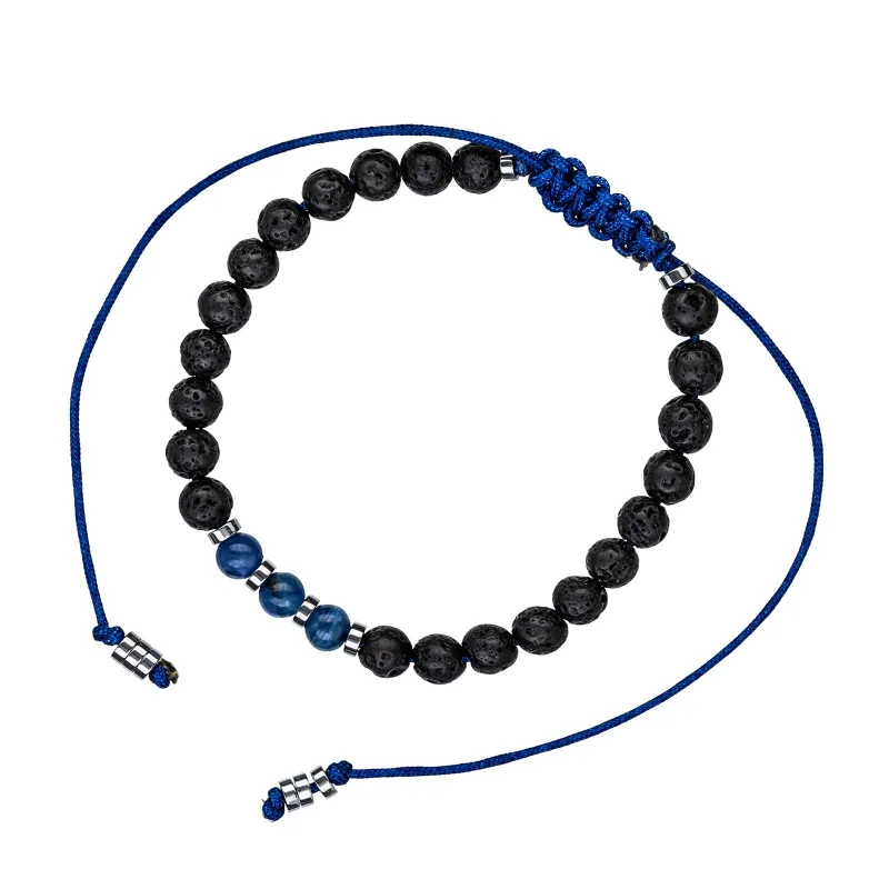 Kyanit, Lawa Wulkaniczna - bransoletka męska na sznurku na siłę, harmonię, uzdrowienie - Jego styl