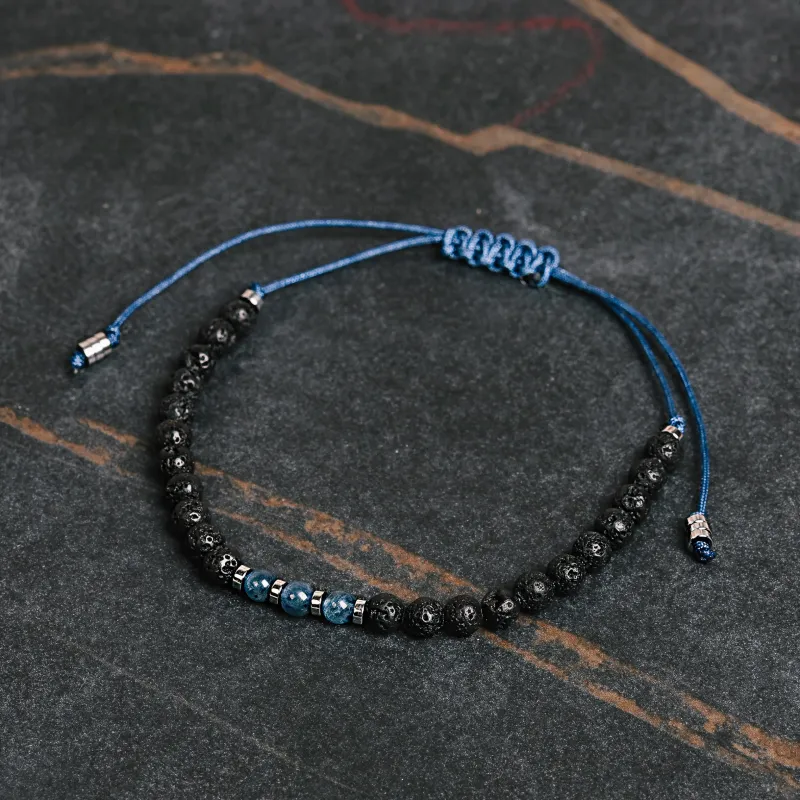 Ta unikalna kombinacja Kyanitu i Lawy Wulkanicznej tworzy bransoletkę, która jest silnym talizmanem wspierającym: