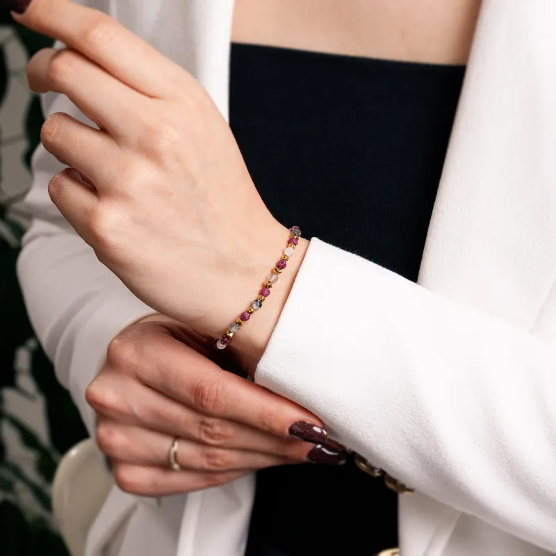 Każdy kamień w tej niezwykłej bransoletce nosi w sobie unikalną energię i przesłanie, tworząc harmonijną symfonię dla duszy: