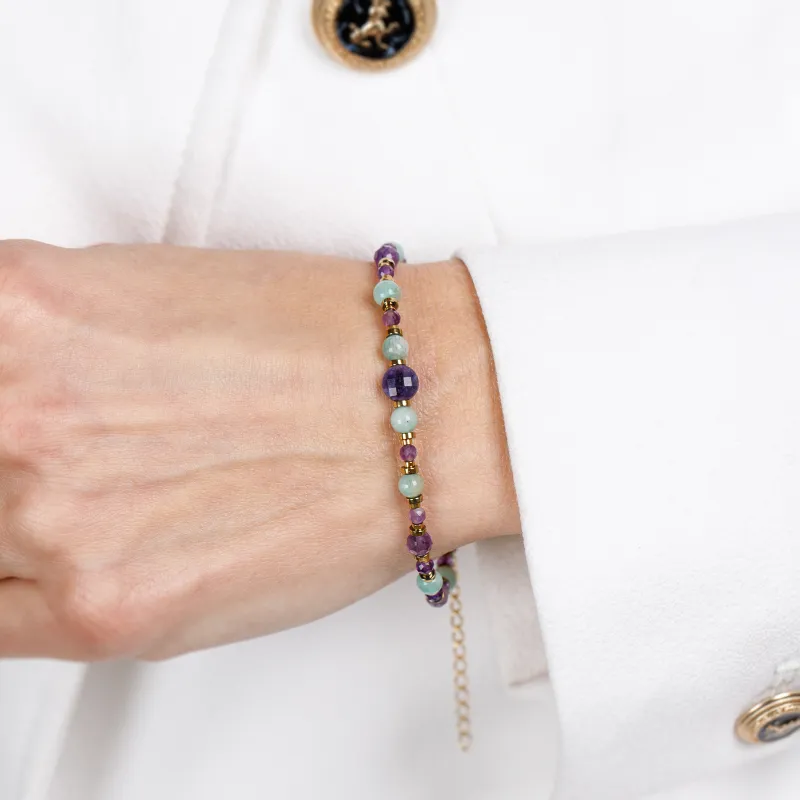 Ametyst, Amazonit, Hematyt - srebrna pozłacana bransoletka na koncentrację, miłość, sukces - Energia Sukcesu