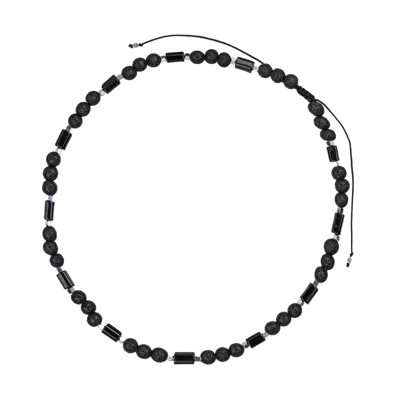 Czarny Turmalin, Lawa Wulkaniczna, Hematyt - naszyjnik męski na sznurku na ochronę, bogactwo, uzdrowienie - Jego styl