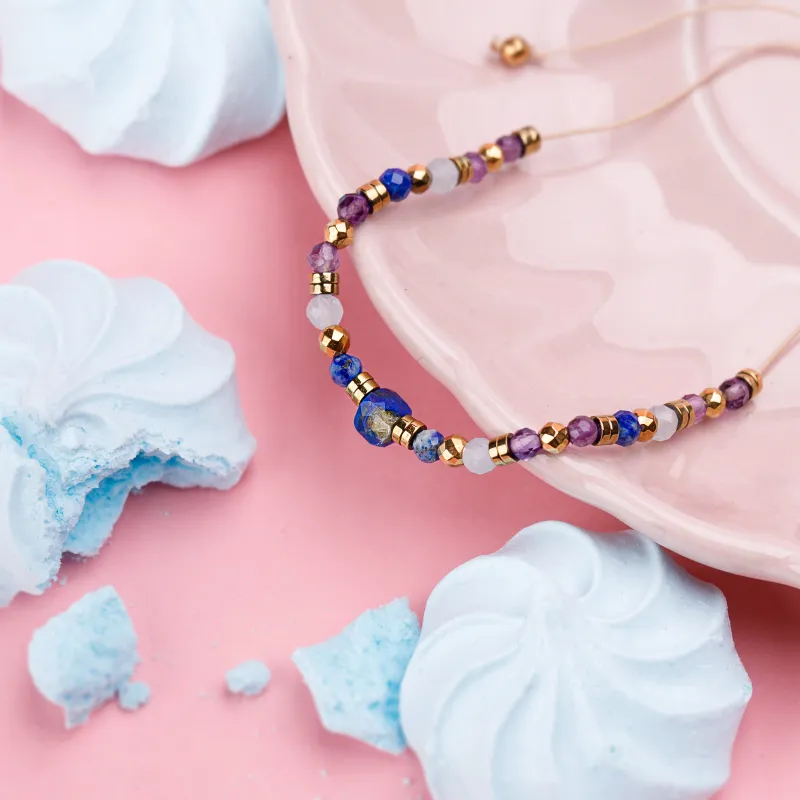 Lapis Lazuli, Akwamaryn, Ametyts - bransoletka na sznurku na zdrowie, intuicję, duchowość - Duchowe Przebudzenie