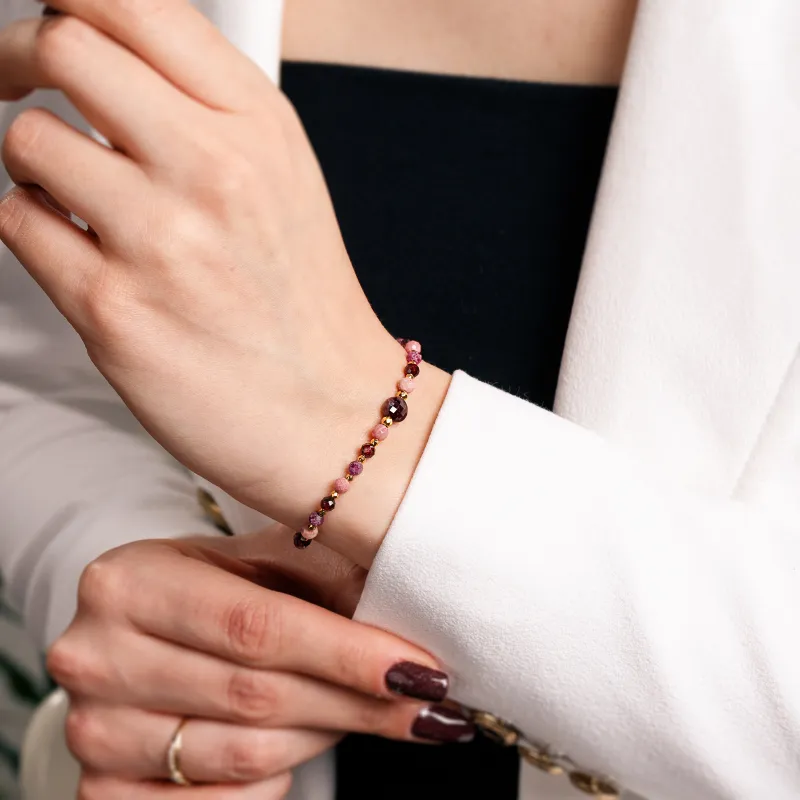 Granat, Rodonit, Rodochrozyt - srebrna pozłacana bransoletka na zdrowie, miłość, kreatywność - Pocałunek Miłości