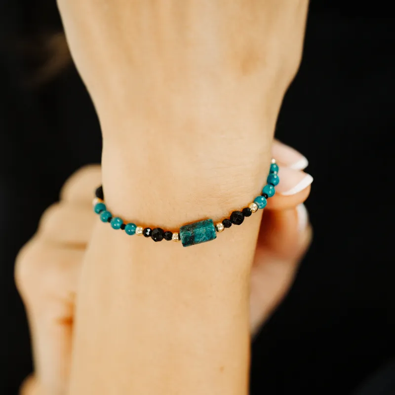 Bransoletka Apatyt, Turmalin to symbol kreatywności, harmonii i uzdrawiania. Nosząc ją, możesz poczuć się silniejsza, bardziej kreatywna i wzmocnić swoje wewnętrzne połączenie z naturą.