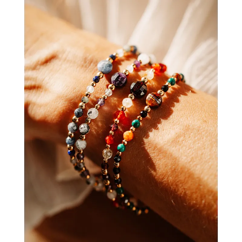 To bransoletka damska przeznaczona dla kobiet pragnących odnowy, pasji i harmonii. Doskonała do noszenia na co dzień, o każdej porze roku, idealnie współgra z naturalną kobiecą energią. W jej połyskujących, fasetowanych kamieniach kryje się blask życia – subtelny, ale niezwykle potężny.