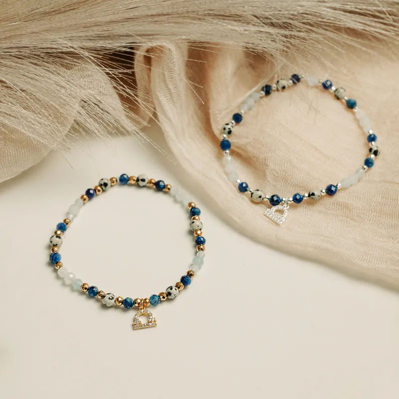Akwamaryn, Kyanit, Jaspis - srebrna pozłacana bransoletka na zdrowie, odwagę, harmonię - Waga