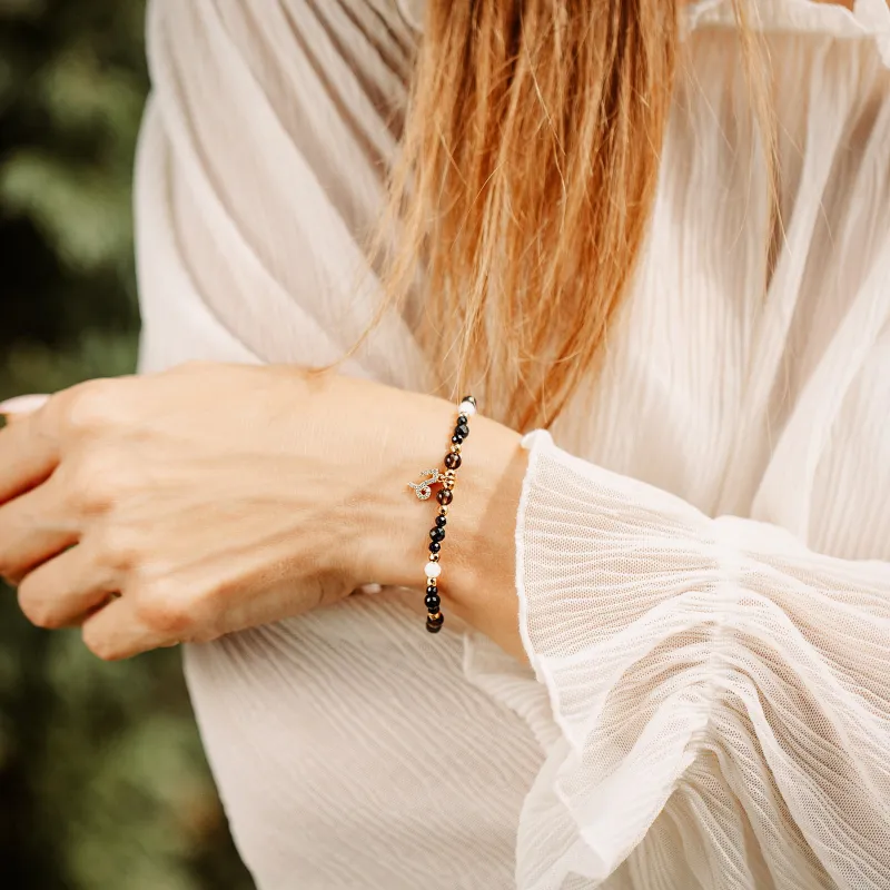 Ta wyjątkowa bransoletka to nie tylko piękny dodatek, ale także mocny talizman, który ma chronić, przyciągać bogactwo i wspierać uzdrawianie. Stworzona z myślą o osobach urodzonych pod znakiem Koziorożca, jest symbolicznym połączeniem energii poszczególnych kamieni, które wzajemnie się uzupełniają.