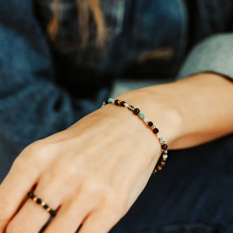Spektrolit, Turmalin, Akwamaryn - srebrna pozłacana bransoletka na szczęście, ochronę, koncentrację - Ezoteryczna Elegancja