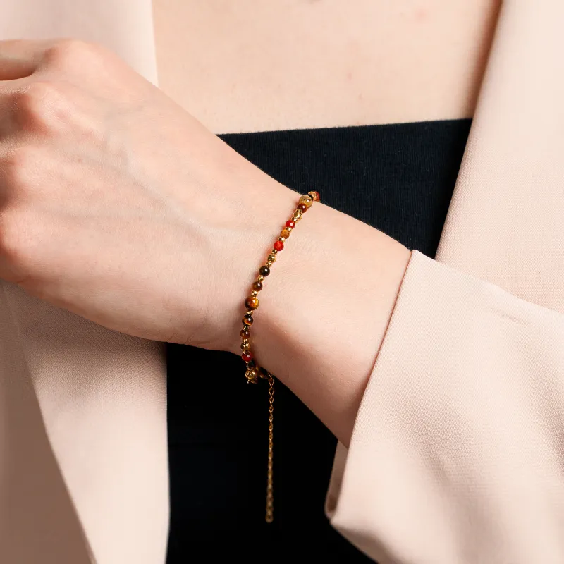 Tygrysie Oko, Karneol, Hematyt - srebrna pozłacana bransoletka na bogactwo, sukces, siłę - Ezoteryczna Elegancja