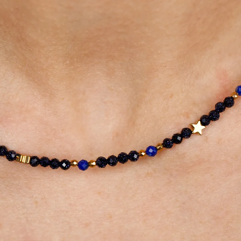Noc Kairu, Lapis Lazuli - srebrny pozłacany naszyjnik na harmonia, uzdrawianie, spokój - Parada Planet