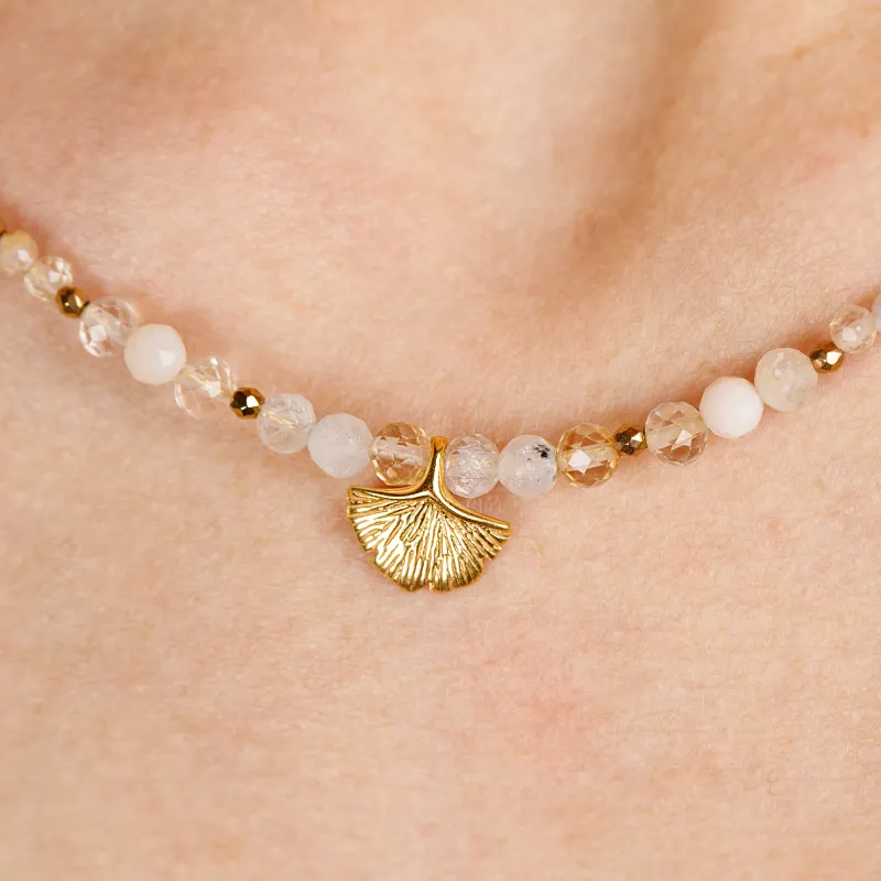 W centrum naszyjnika znajduje się liść miłorzębu – symbol długowieczności, odporności i siły. To symbol kreatywności i harmonii, który symbolizuje połączenie z naturą i odnajdywanie wewnętrznej równowagi.
