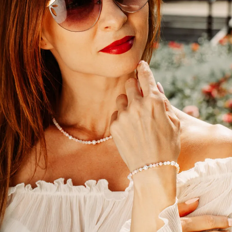 Perła, narodzona z cierpienia i transformacji, symbolizuje czystość, doskonałość i miłość. Jej delikatny blask odzwierciedla subtelność kobiecej duszy, a jej okrągły kształt reprezentuje nieskończony cykl życia. W połączeniu z opalem, kamieniem o zmieniających się barwach, perła tworzy niezwykłą symbiozę.