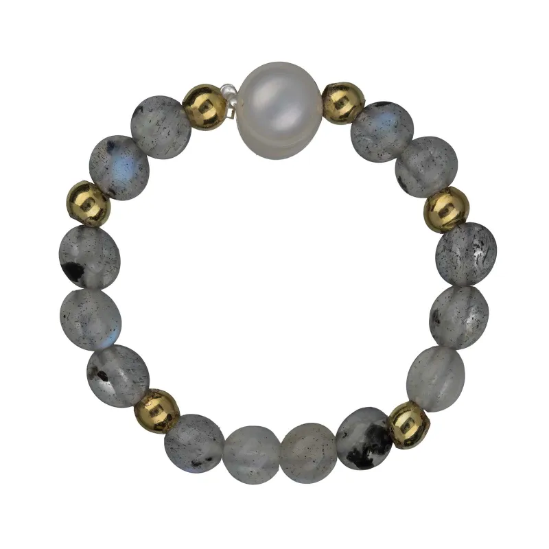 Perła, Labradoryt - srebrny pozłacany pierścionek na odwagę, duchowość, kreatywność - Skarby Oceanu