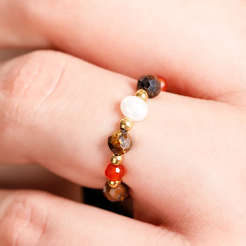 Tygrysie Oko, Perła, Karneol, Hematyt - pierścionek na bogactwo, sukces, siłę - Symfonia Bogactwa