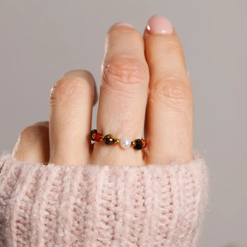 Ten niezwykły pierścionek, stworzony z dbałością o każdy detal, jest owocem rzemieślniczej precyzji i pasji, zaprojektowanym z myślą o trwałości i komforcie. To właśnie Tygrysie Oko, Perła, Karneol, Hematyt - pierścionek Symfonia Bogactwa.