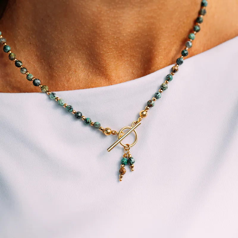 Zastosowane w komplecie kamienie i kolorystyka idealnie wpisują się w letnie klimaty. Biżuteria dodaje lekkości i podkreśla wakacyjny styl, a jej uniwersalny charakter pozwala na noszenie jej na co dzień.