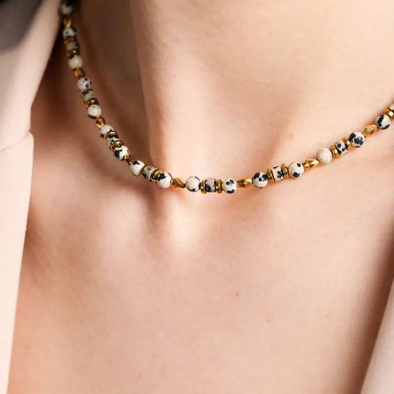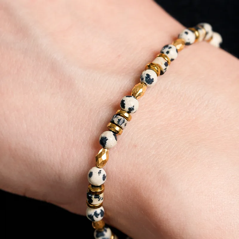 - Jaspis: Ceniony od wieków, jaspis jest symbolem siły, stabilności i wewnętrznego spokoju. Delikatne odcienie bieli i złota, wtopione w ten kamień, sprzyjają refleksji i pomagają odnaleźć równowagę w pędzącym świecie.