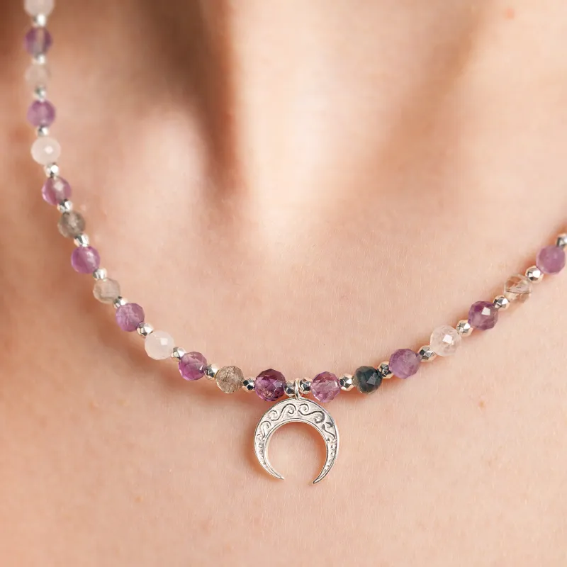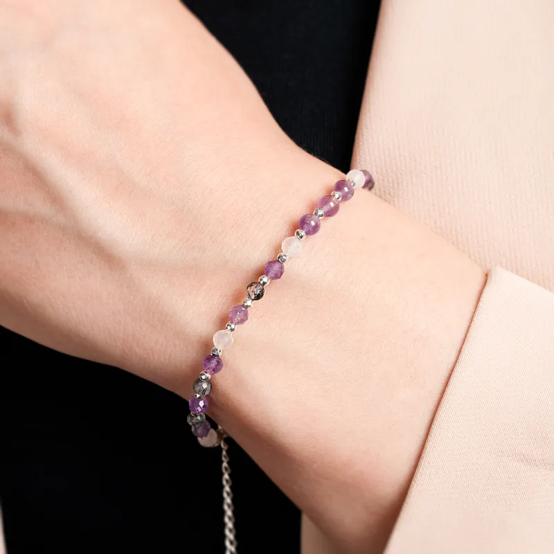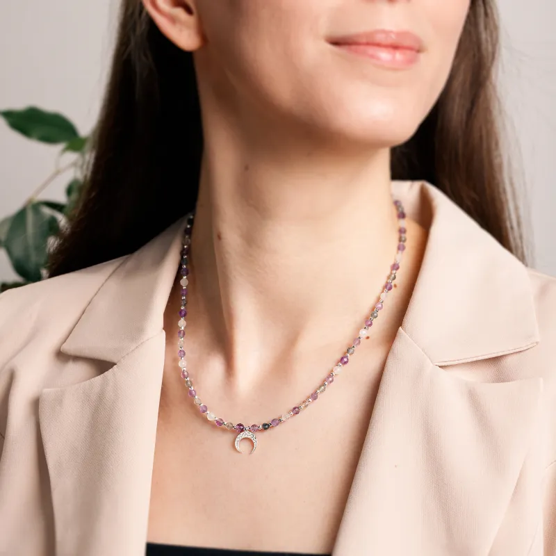 W sercu kompletu biżuterii "Energia Sukcesu" kryją się dwa kamienie szlachetne: kamień księżycowy i ametyst, które łączą w sobie energię sukcesu i spokoju.