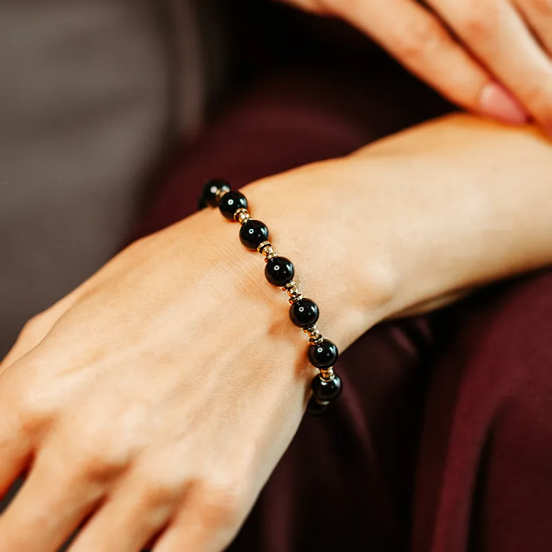 Hematyt to z kolei kamień materialnego sukcesu i odwagi. Jego złociste refleksy przyciągają dostatek, wspierają pewność siebie i pomagają w podejmowaniu decyzji. Symbolizuje zakorzenienie i równowagę pomiędzy światem duchowym a fizycznym, a jego energia dodaje stabilności i mocy działania. W połączeniu z turmalinem tworzy energetyczny duet ochrony i bogactwa – subtelne połączenie transformującej siły i przyciągającej obfitości.