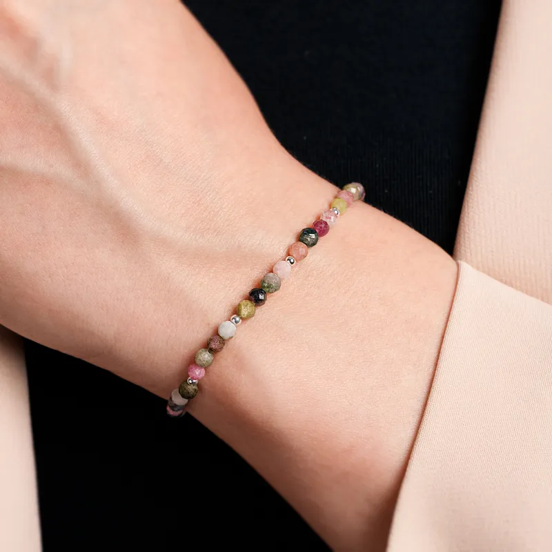 - Kamienie: Delikatne kulki Turmalinu i Hematytu o średnicy 4.2mm, występujące w kolorach srebrnym i kolorowym, niektóre fasetowane, by odbijać światło.