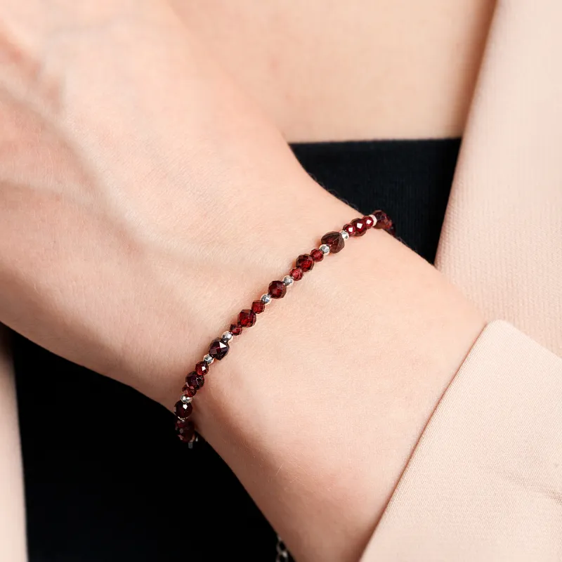 - Granat: Kamień pasji i witalności, symbolizuje głęboką miłość, odwagę i nieustającą energię, dodając blasku każdemu spojrzeniu.