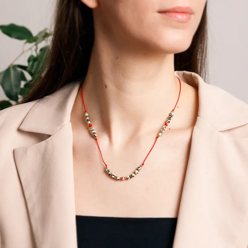 Komplet Refleksja Zdrowia to połączenie trzech rodzajów jaspisu: białego, czarnego i czerwonego. Każdy z nich reprezentuje inny aspekt naszej wewnętrznej podróży: