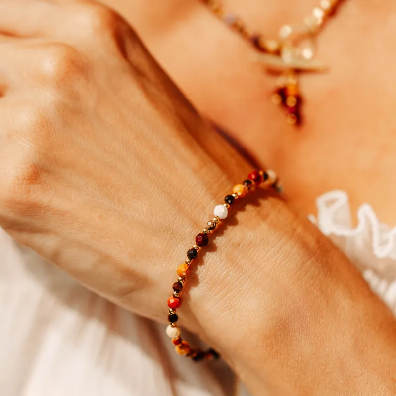 Sercem tego wyjątkowego zestawu są kamienie szlachetne o bogatej symbolice. Tygrysie oko, znane ze swoich ochronnych właściwości, dodaje siły i pewności siebie, pomagając w osiąganiu zamierzonych celów. Hematyt, kamień ziemi, wzmacnia energię witalną, uspokaja i dodaje stabilności. Mokait, z kolei, otwiera na dobrobyt i obfitość, wspomagając manifestację marzeń. Połączenie tych trzech kamieni tworzy harmonijną kompozycję, która wspiera równowagę energetyczną i przyciąga pozytywne wibracje.