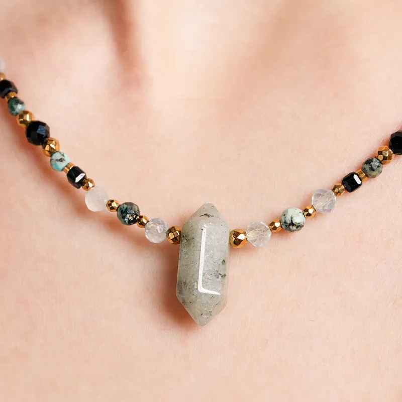 - Spektrolit, z jego hipnotyzującymi rozbłyskami barw, jest niczym tarcza, która chroni i wzmacnia wewnętrzną mądrość, prowadząc przez życiowe zmiany.