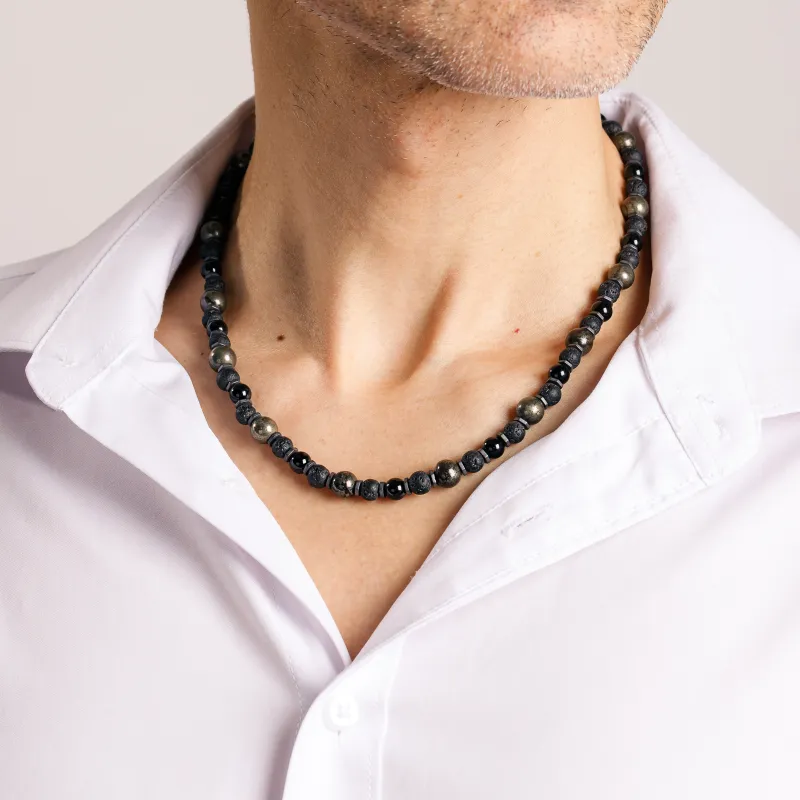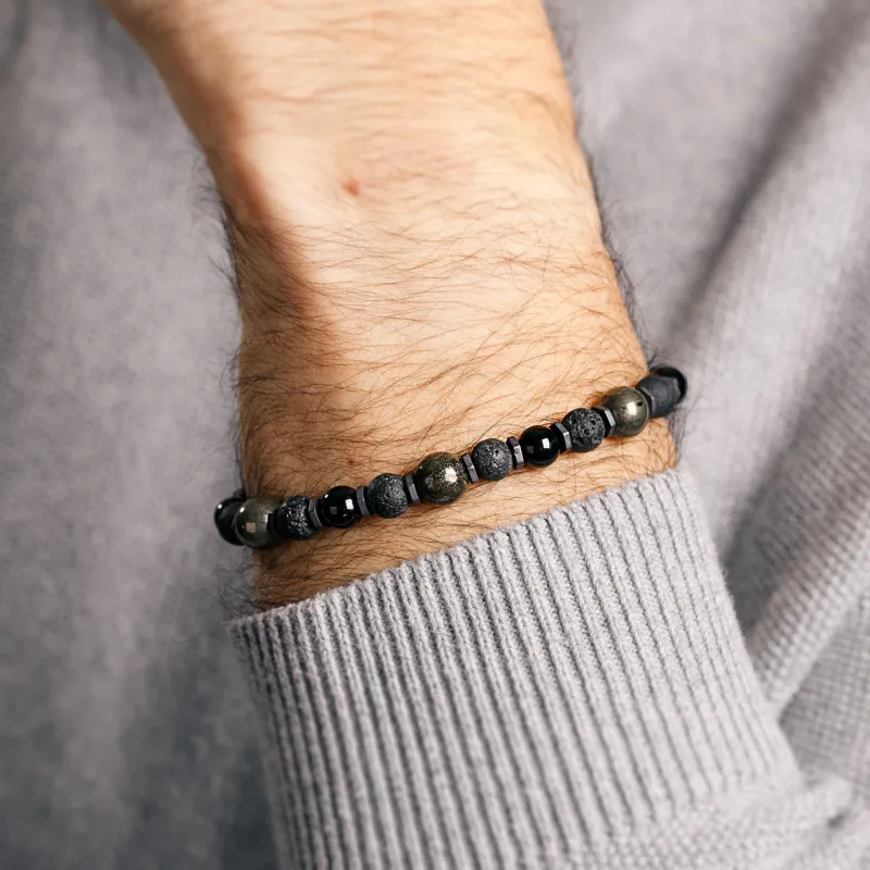 - Kolor: Głęboka czerń kamieni, wzbogacona metalicznymi akcentami.